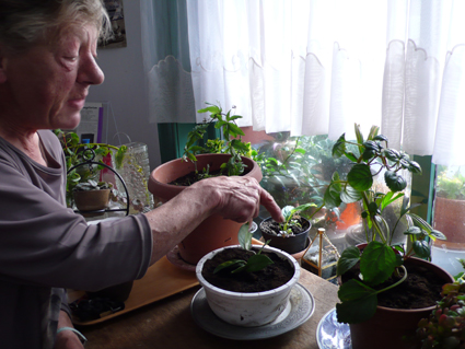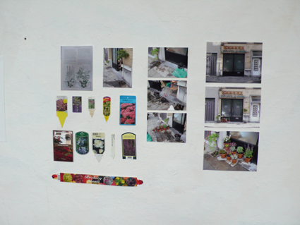 Magda Delvou lives opposite the gallery and is well known in the local area for having covered the outside of her house with plants and flowers. Magda also tends to other plants in the street, and passersby sometimes leave ‘sick plants’ with her to recover. During the residency Lucy Harrison made contact with Magda and introduced her to Lokaal 01. As well as an interview with Magda and photographs of her plants, a similar collection of plants has been started around the doors of Lokaal 01, which will remain there, looked after by her and future artists in residence, after the exhibition has finished.